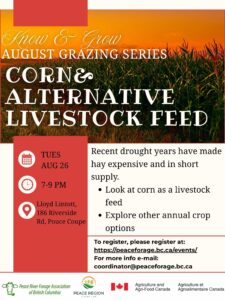 For more details, maps and registration please go to: https://peaceforage.bc.ca/event/aug-26th-corn-for-livestock-feed/
