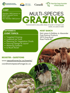 For more details, maps, agenda for the day and registration please go to: https://peaceforage.bc.ca/event/multispeciesgrazing_sept16th/